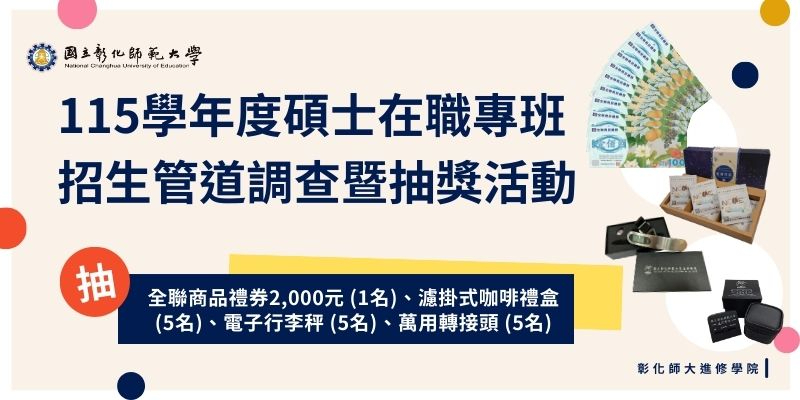 <中獎公告>彰化師大進修學院115學年度碩士在職專班招生管道調查暨抽獎活動